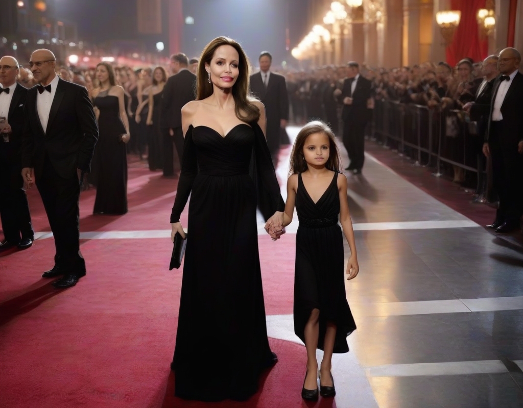 Jolie, famed for her roles in cinema and her devotion to humanitarian causes, is celebrated for her flawless style and timeless elegance. Her daughter, emerging in the acting world and showing signs of a promising future, displayed her fashion sense, evidently inheriting her mother’s flair for style.