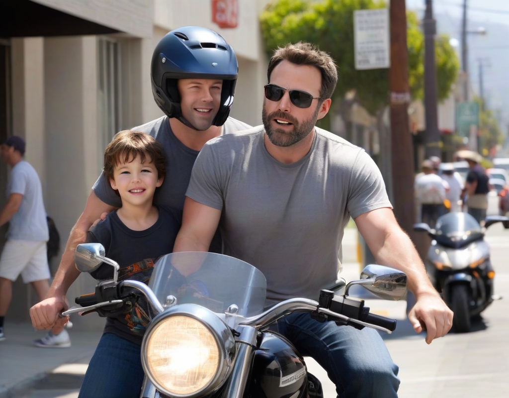 The father and son were observed navigating the roads of Los Angeles, with Affleck at the helm and Samuel seated behind him on the bike. They appeared to be thoroughly enjoying themselves, engaging in lively conversation and laughter throughout their ride.