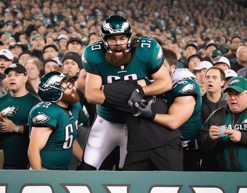 A fervent Philadelphia Eagles supporter is currently dealing with a painful injury following an unintentional chest bump from Jason Kelce, the team’s renowned center, which did not go as planned. The mishap took place during a recent game and resulted in considerable discomfort for the fan.
