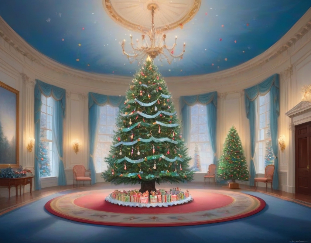 Central to this awe-inspiring decoration is the official White House tree, an impressive Fraser fir from North Carolina, which stands regally adorned with shimmering multicolored lights and colorful three-dimensional holiday sweets like peppermints and ribbon candies. What makes this tree particularly poignant is the personal touch of having a name tag for each U.S. state, territory, and the District of Columbia, symbolizing the nation’s rich diversity and unity.