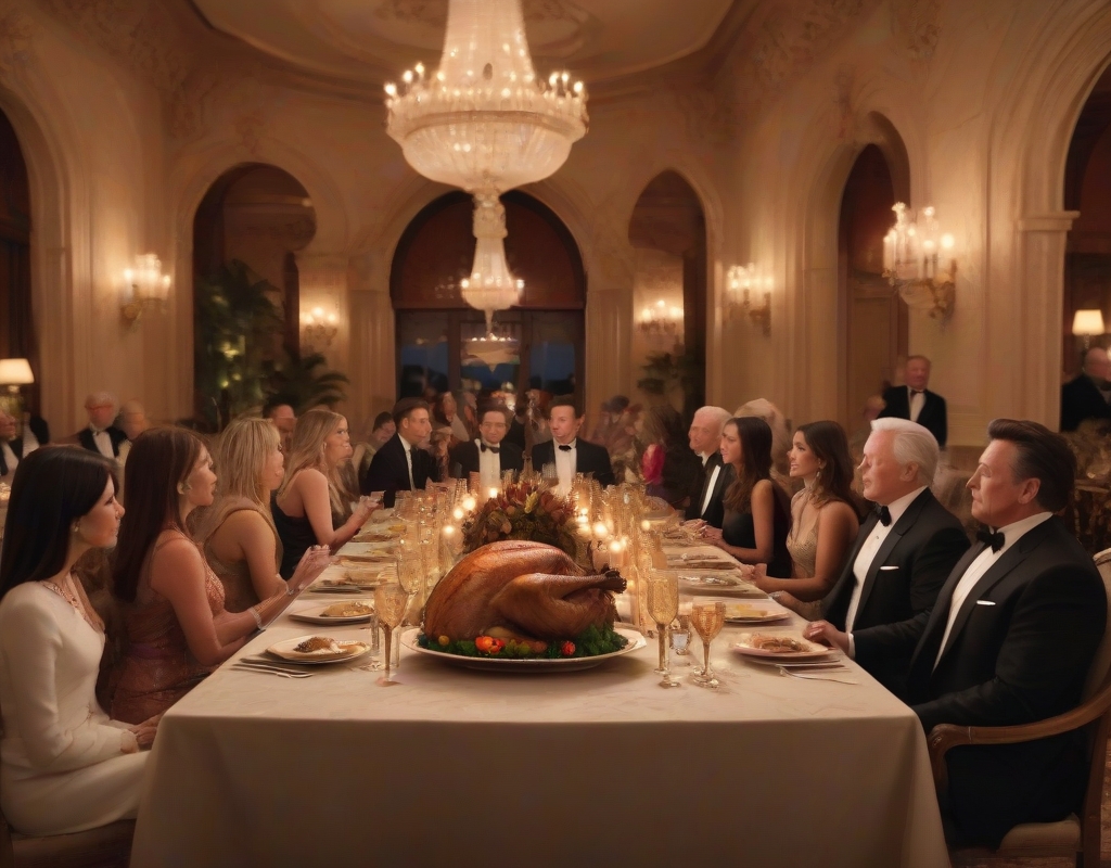 Overall, the Thanksgiving event at Mar-a-Lago was more than just an evening of festivities; it was a symbolic gathering that reinforced the timeless values of connection and reflection, serving as a microcosm of the potential for shared progress and understanding in a multifaceted world. Such gatherings are significant not only in their immediate joy and communion but in their broader implications for fostering a hopeful, interconnected future.