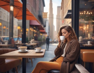See the beloved artist unwinding at a chic café, blending relaxation with creativity in a perfect setting.