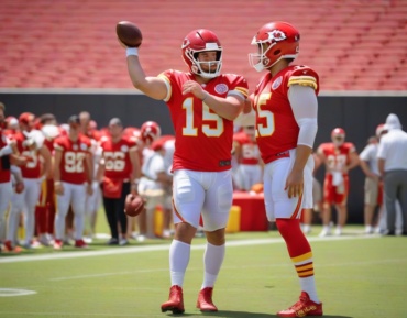 NFL stars shine as Travis Kelce throws an unexpected pass to Patrick Mahomes, showcasing versatility and teamwork.