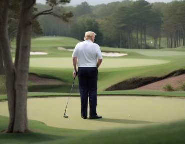 Watch as Donald Trump nearly scores a hole-in-one, demonstrating impressive golfing prowess in a thrilling moment.