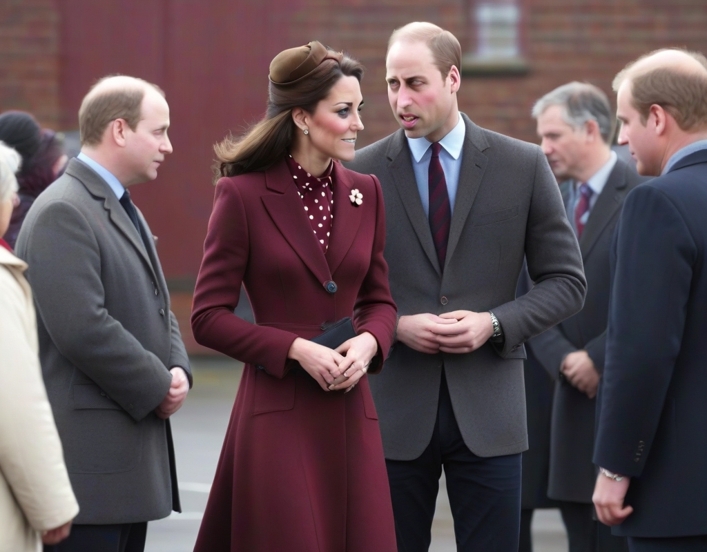 The event has deeply affected the local community, and Kate’s presence was a sign of compassion and unity. She chose to wear a dark brown coat over a maroon dress adorned with white polka dots, complementing Prince William’s attire of a gray blazer and maroon sweater.